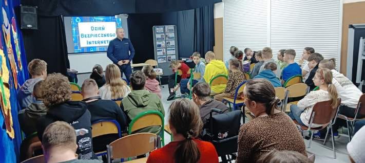 Policjanci zajmujący się profilaktyką społeczną w wieluńskiej komendzie spotykają się z dziećmi i młodzieżą w placówkach oświatowych na terenie naszego powiatu. W ostatnim czasie odwiedzili m.in. szkoły podstawowe Rychłocicach, Kurowie, Zespół Szkół Specjalnych w Wieluniu. Głównym celem tych spotkań jest podnoszenie świadomości na temat zasad bezpiecznego korzystania z internetu, jak również zagrożeń na jakie mogą się natknąć w cyberprzestrzeni. W trakcie prelekcji omówiono kwestie dotyczące zasad bezpiecznego korzystania z mediów społecznościowych. Przedstawiono zagrożenia związane z kontaktami z nieznajomymi w internecie, ponadto zwrócono uwagę na kulturę komunikacji w sieci. Wyjaśniono czym jest hejt, mowa nienawiści. Mundurowi przestrzegali młodych ludzi przed publikowaniem swoich zdjęć w internecie ponieważ nie wiadomo kiedy i do czego mogą być wykorzystane przez inne osoby. Policjanci omówili zjawisko cyberprzemocy, negatywne jego skutki oraz konsekwencje związane z naruszeniem prawa. Nie zabrakło również wskazań co robić i gdzie szukać pomocy w sytuacji kiedy młodzi ludzie staną się ofiarami przestępstw. W związku ze zbliżającymi się feriami podczas spotkań poruszane są również tematy dotyczące bezpiecznego spędzania wolnego czasu.