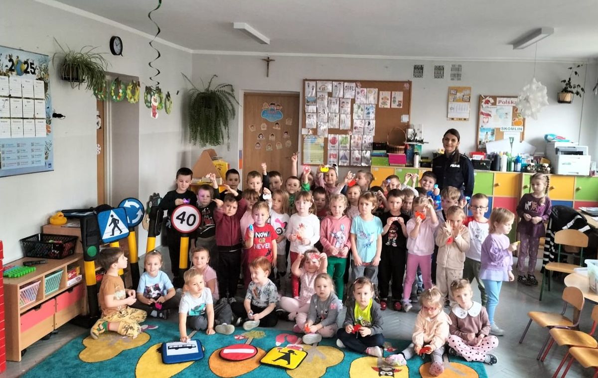 W ramach ogólnopolskiej akcji profilaktycznej „Świeć przykładem- noś odblaski” policjantka zajmująca się profilaktyką społeczną w wieluńskiej komendzie odwiedziła przedszkolaków w Skomlinie. Celem spotkania było przybliżenie najmłodszym zasad bezpiecznego poruszania się po drogach oraz uświadomienie, jak ważna jest widoczność pieszych.